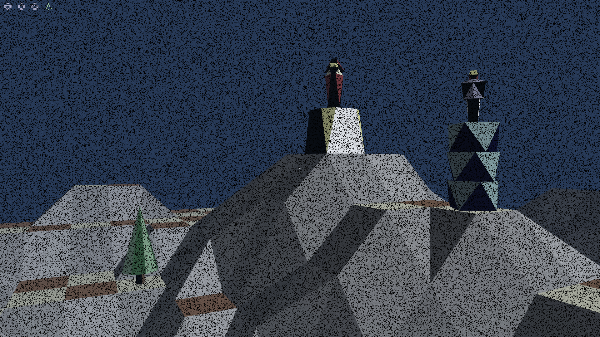 You may have noticed that below and to the right of the starting view (the view that you get on first arriving in the landscape) there is a tree. You should move to look at the square on which the tree is standing. Ensure that the cursor is over the square on which the tree stands, or over the tree itself, and press the left-hand button (or press the 'A' on your keyboard). You will see the tree disappear before your eyes.