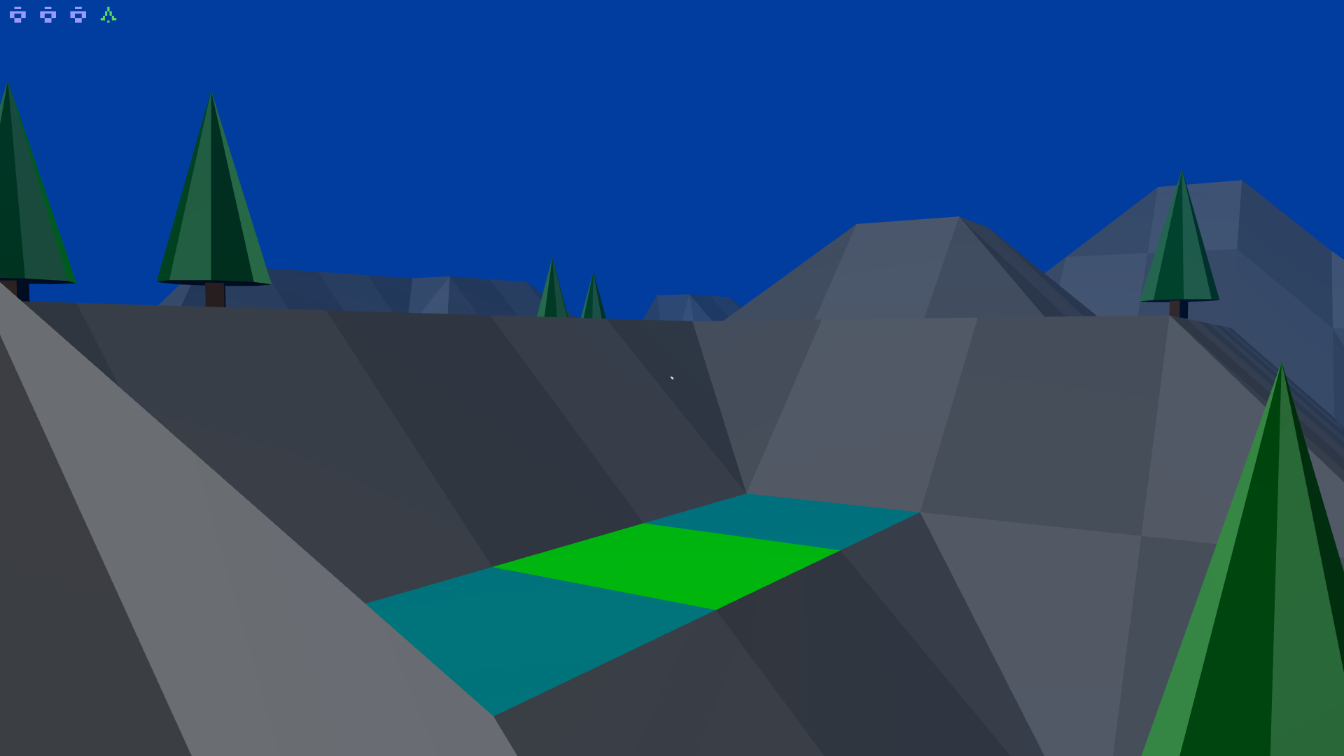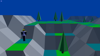 Now that you have absorbed an object, it is time to create an object. From the starting position, look around the landscape until you find a square that doesn't have anything on it. Then, with the cursor on the target square, press the 'T' on the keyboard of your computer and a tree will appear. You will notice that your energy indicator has dropped by 1 unit (ie. a tree).